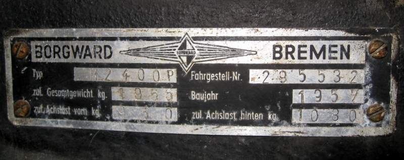 Chassis plate the last car from 1957